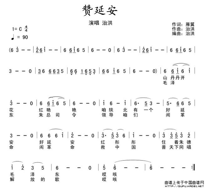 关于《赞延安》曲谱的评论