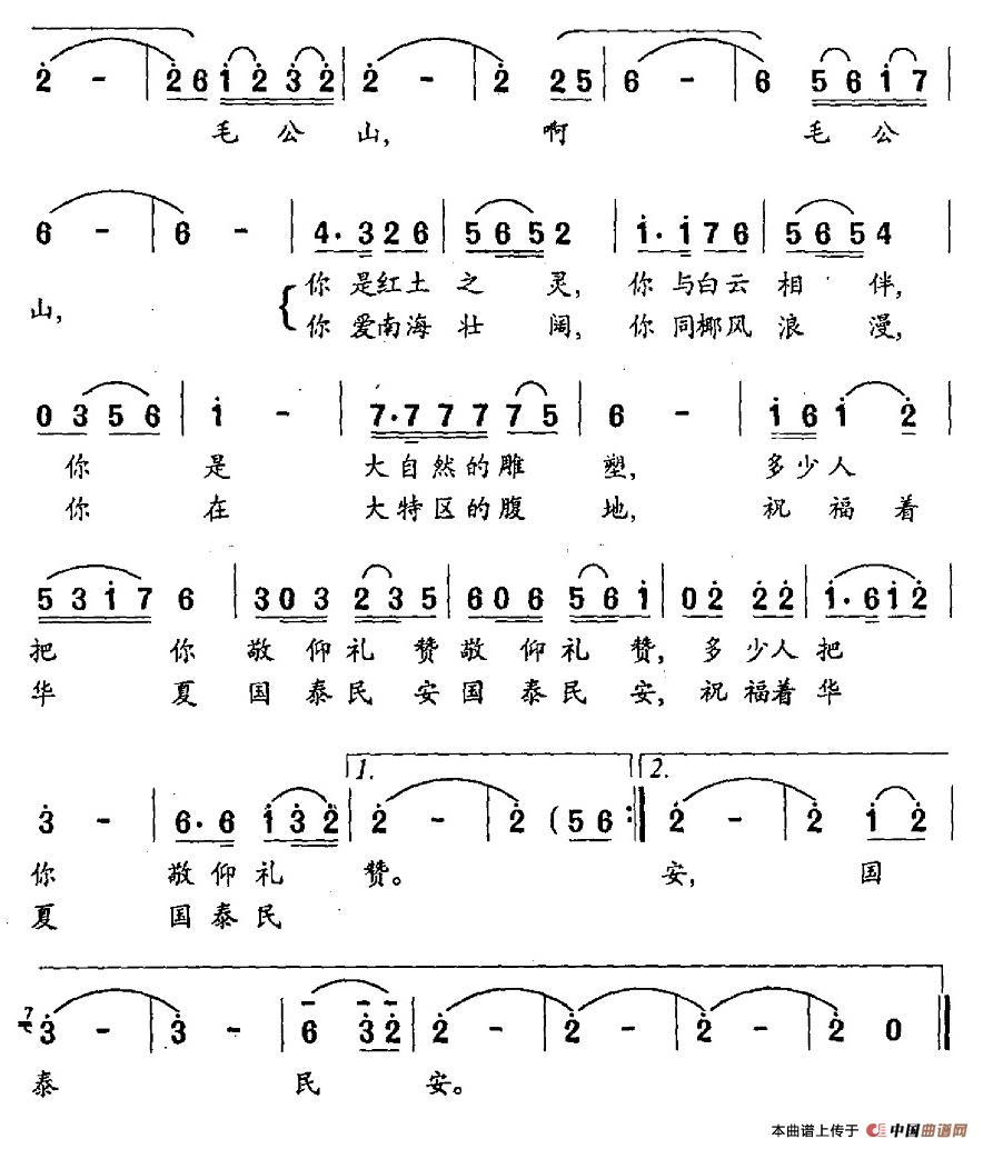 关于《毛公山》曲谱的评论