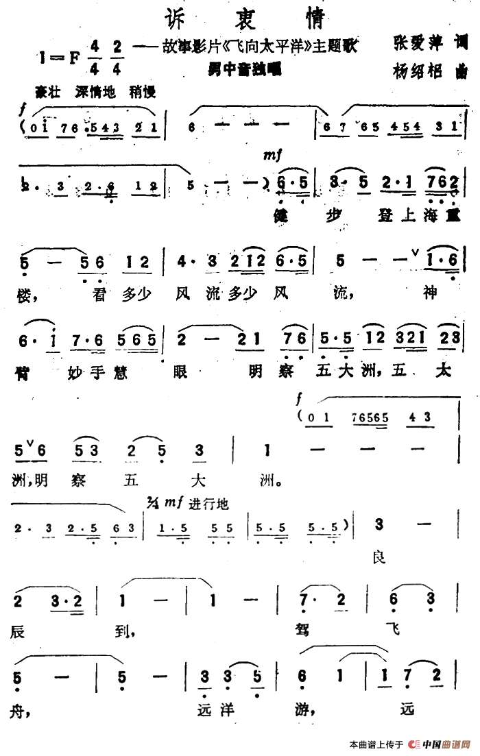 关于《诉衷情》曲谱的评论