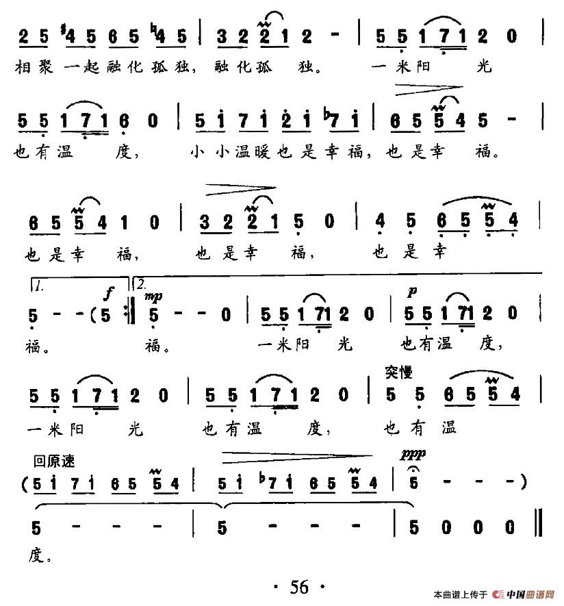 关于《一米阳光》曲谱的评论