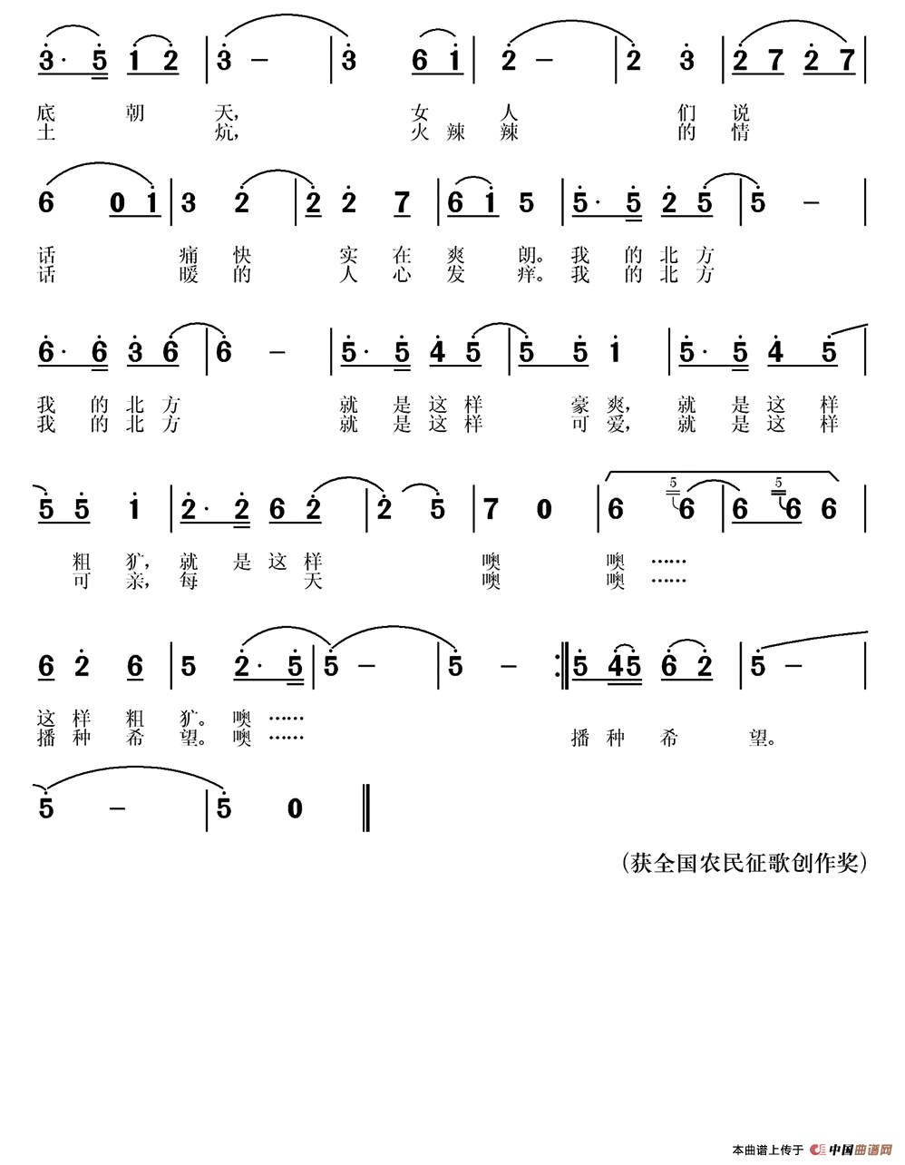 关于《我的北方》曲谱的评论