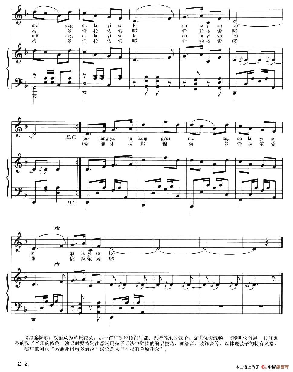 当前位置: 首页 民歌曲谱 四字歌名 邦锦梅多(正谱)
