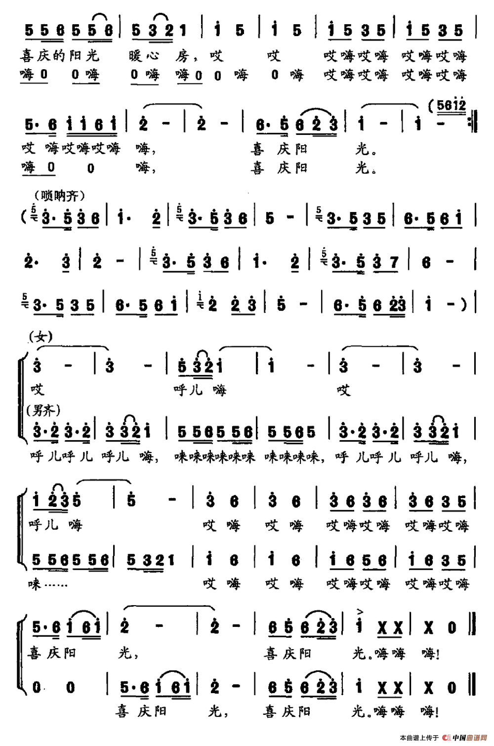 关于《喜庆阳光》曲谱的评论