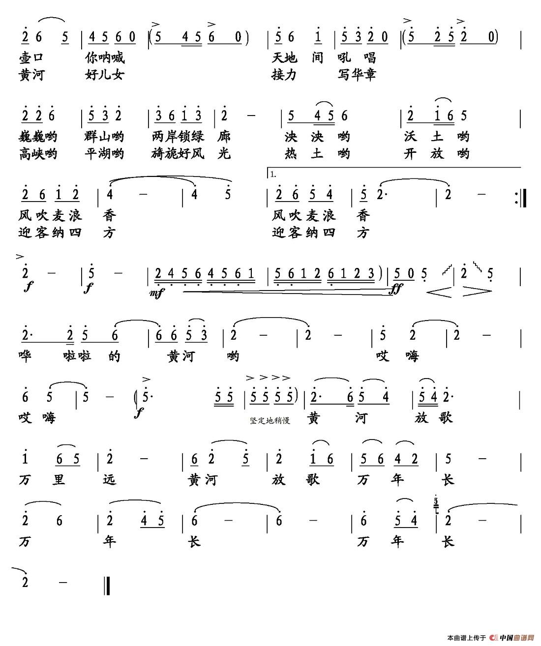 关于《黄河放歌》曲谱的评论