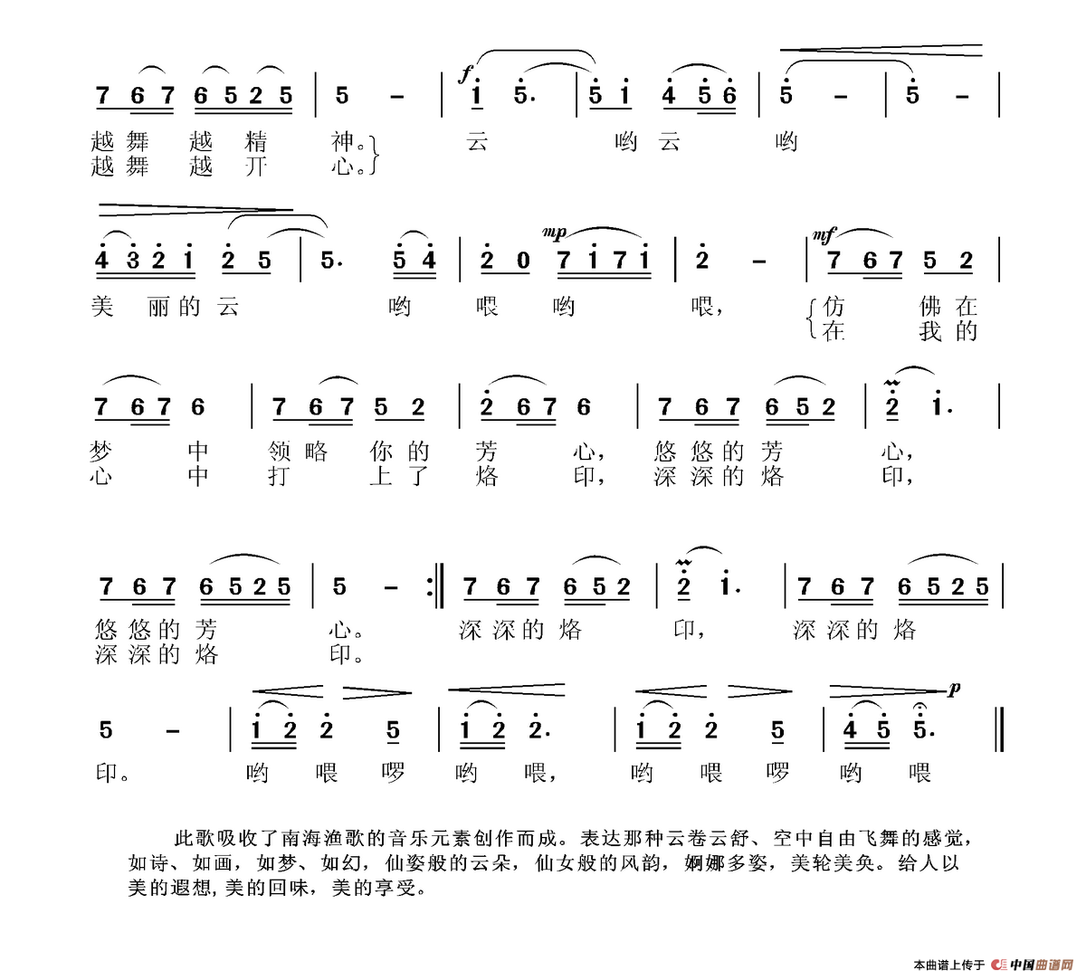 关于《美丽的云》曲谱的评论