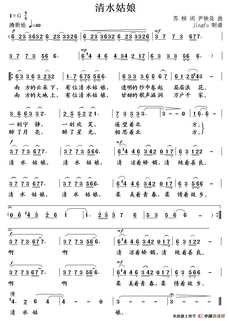 关于《清水姑娘》曲谱的评论