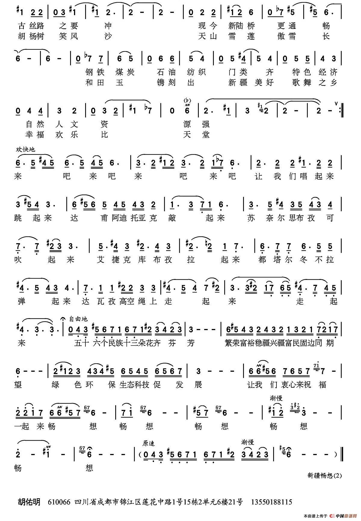 关于《新疆畅想》曲谱的评论