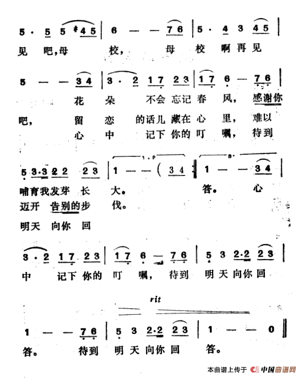 关于《告别母校》曲谱的评论