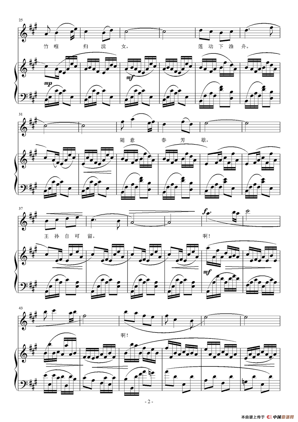 关于《山居秋暝》曲谱的评论