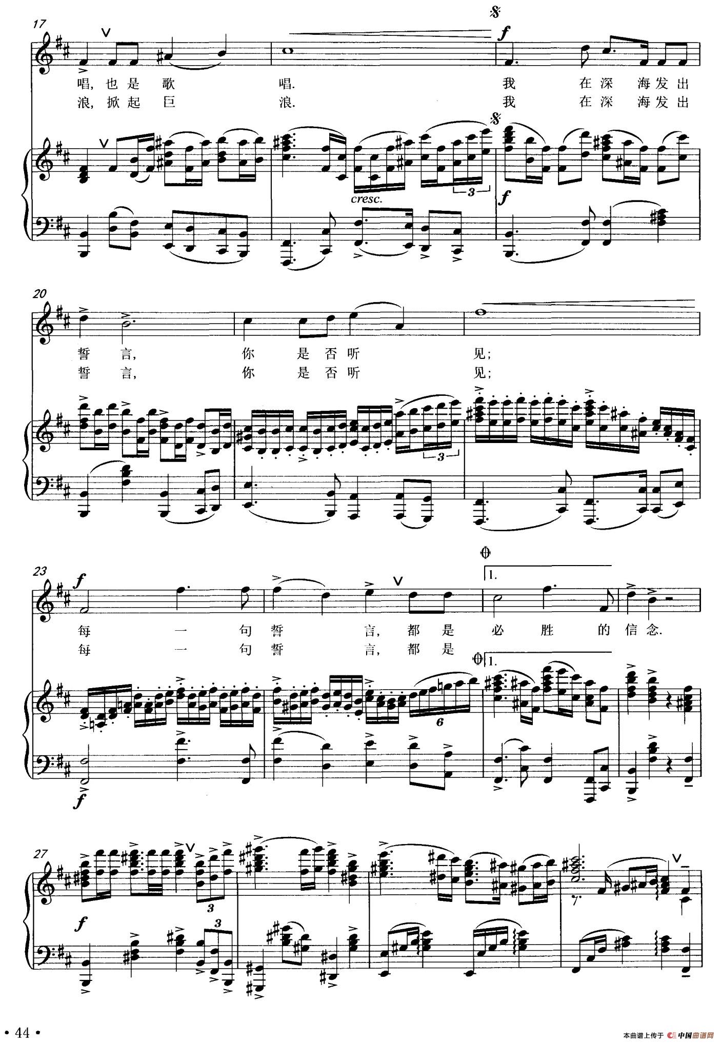 关于《深海誓言》曲谱的评论