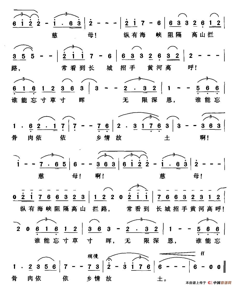关于《乡情故土》曲谱的评论