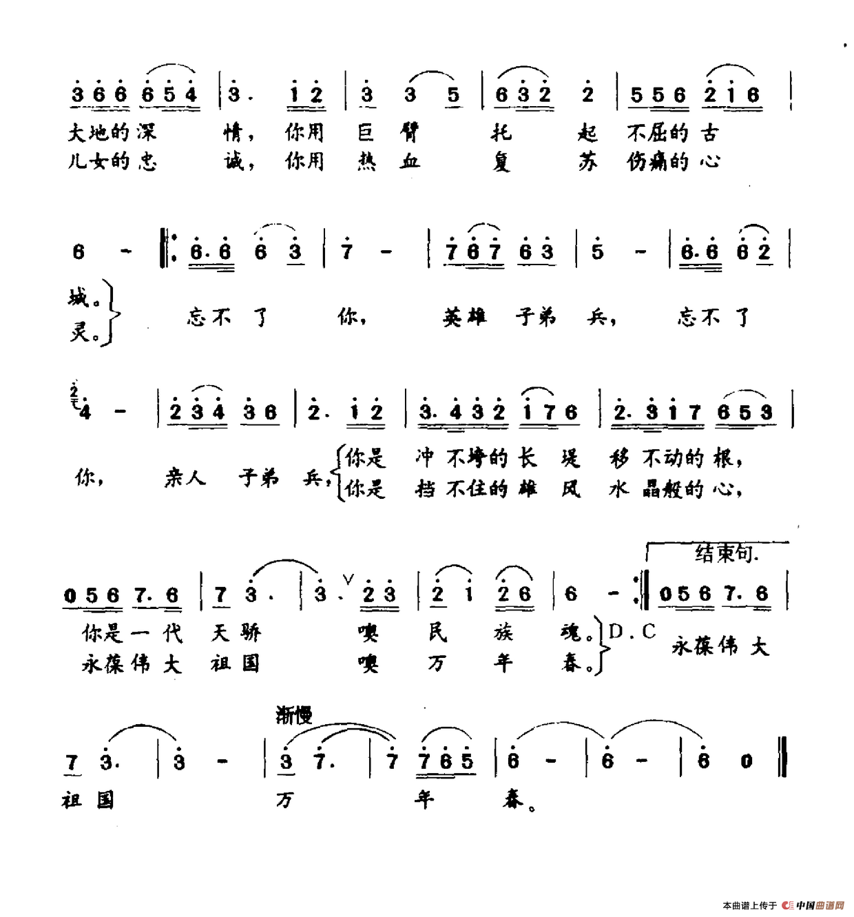 作词:刘沛盛   作曲:亓丰源   来源:《中国曲谱网》   上传:沉舟侧畔过   日期:2017-02-05   浏览次数: