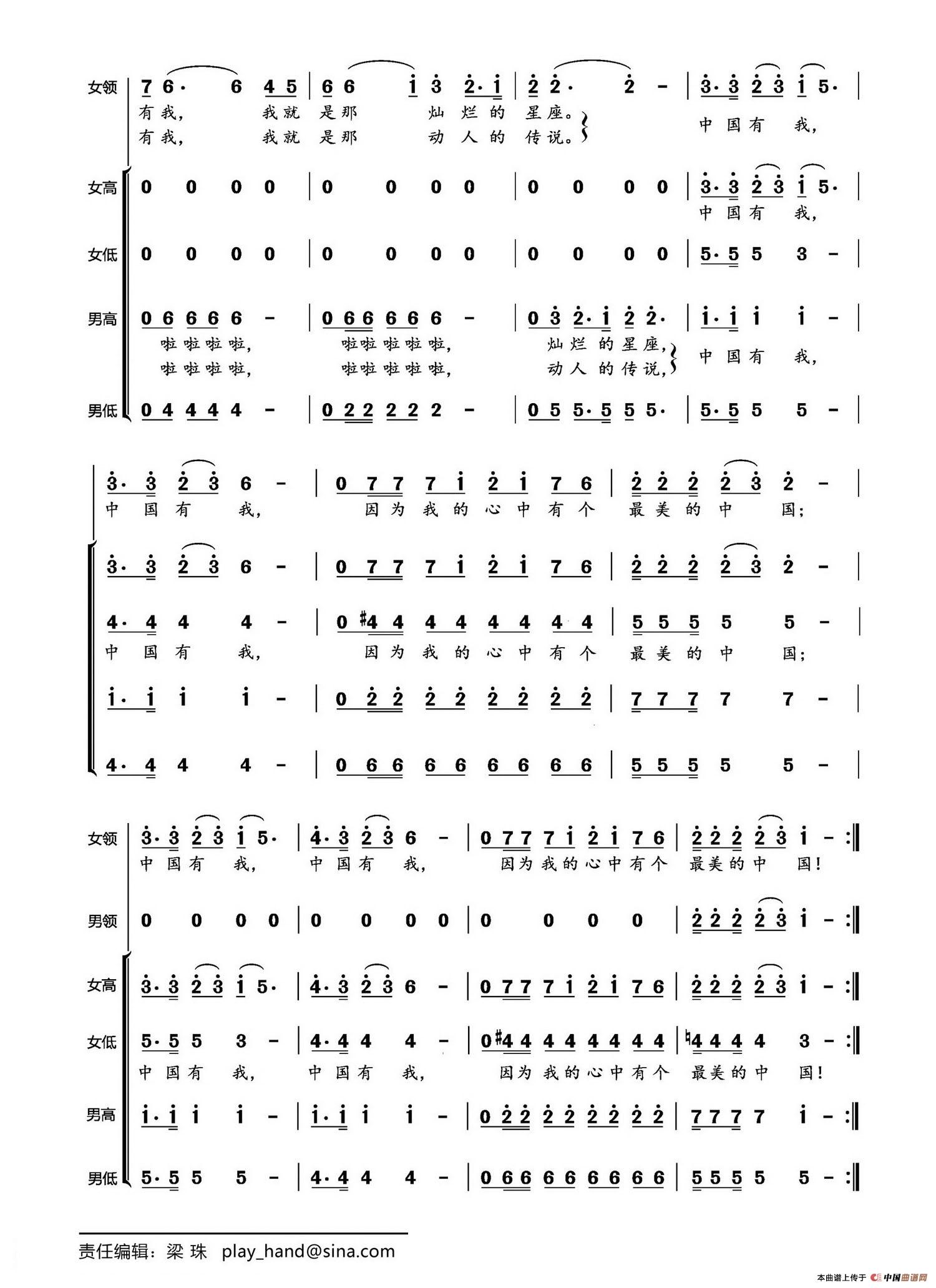 关于《中国有我》曲谱的评论