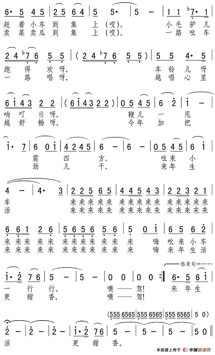 关于《赶集小唱》曲谱的评论