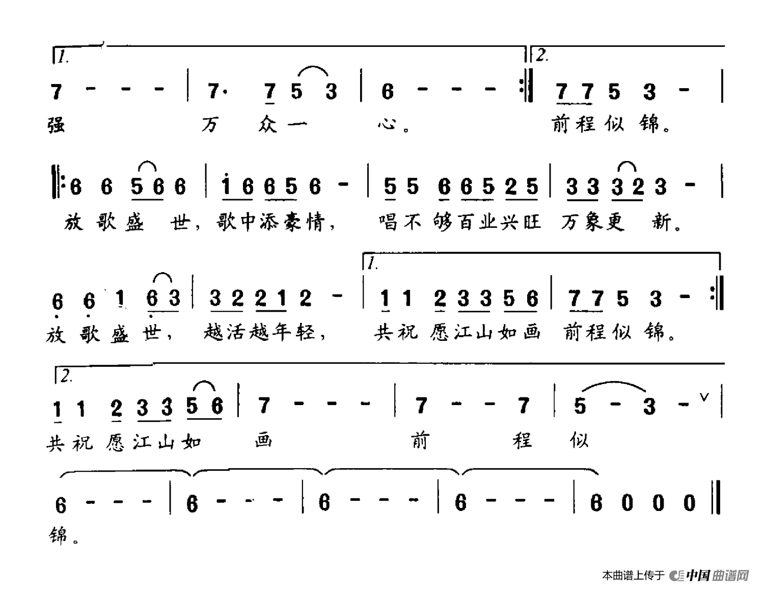关于《放歌盛世》曲谱的评论