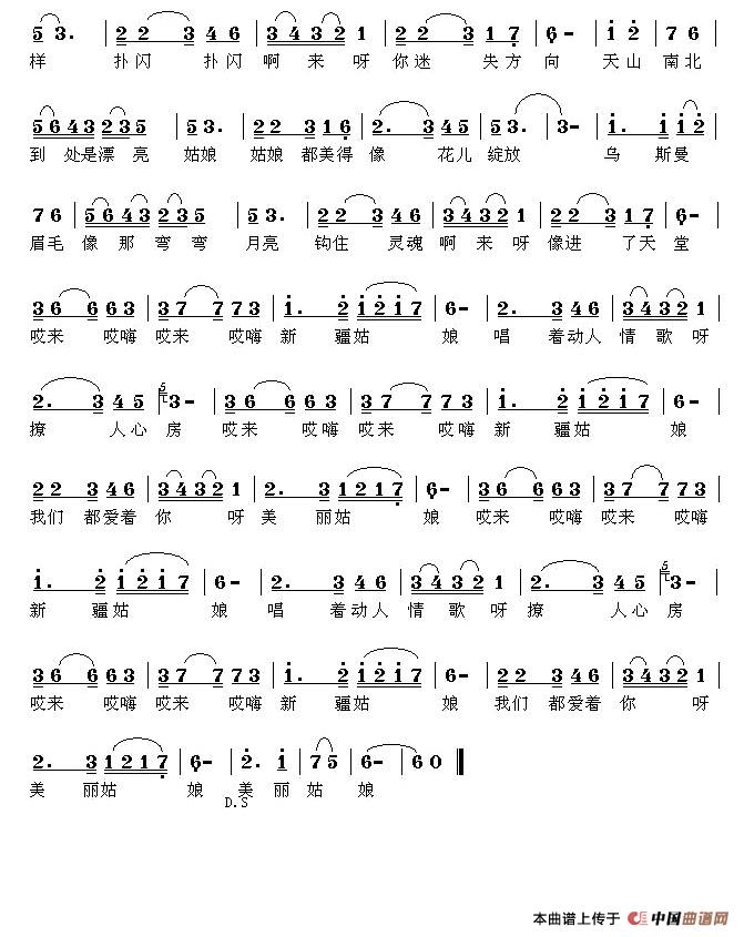 关于《新疆姑娘》曲谱的评论