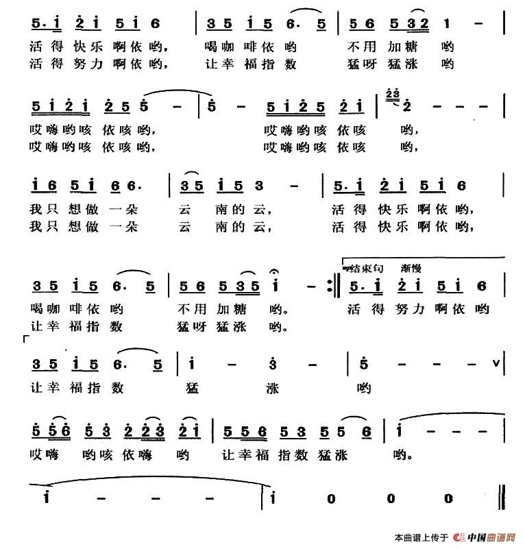 关于《放歌彩云南》曲谱的评论