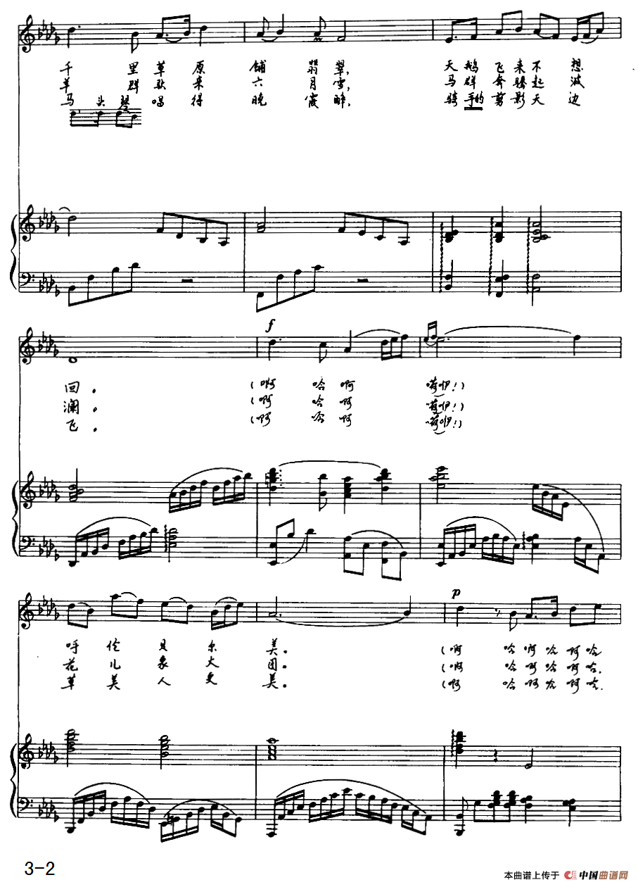 第2页第2 行第2小节第2拍,声乐谱的C音错,应是与钢琴相同的降B音。与后面第3页第2行第1小节完全相同。