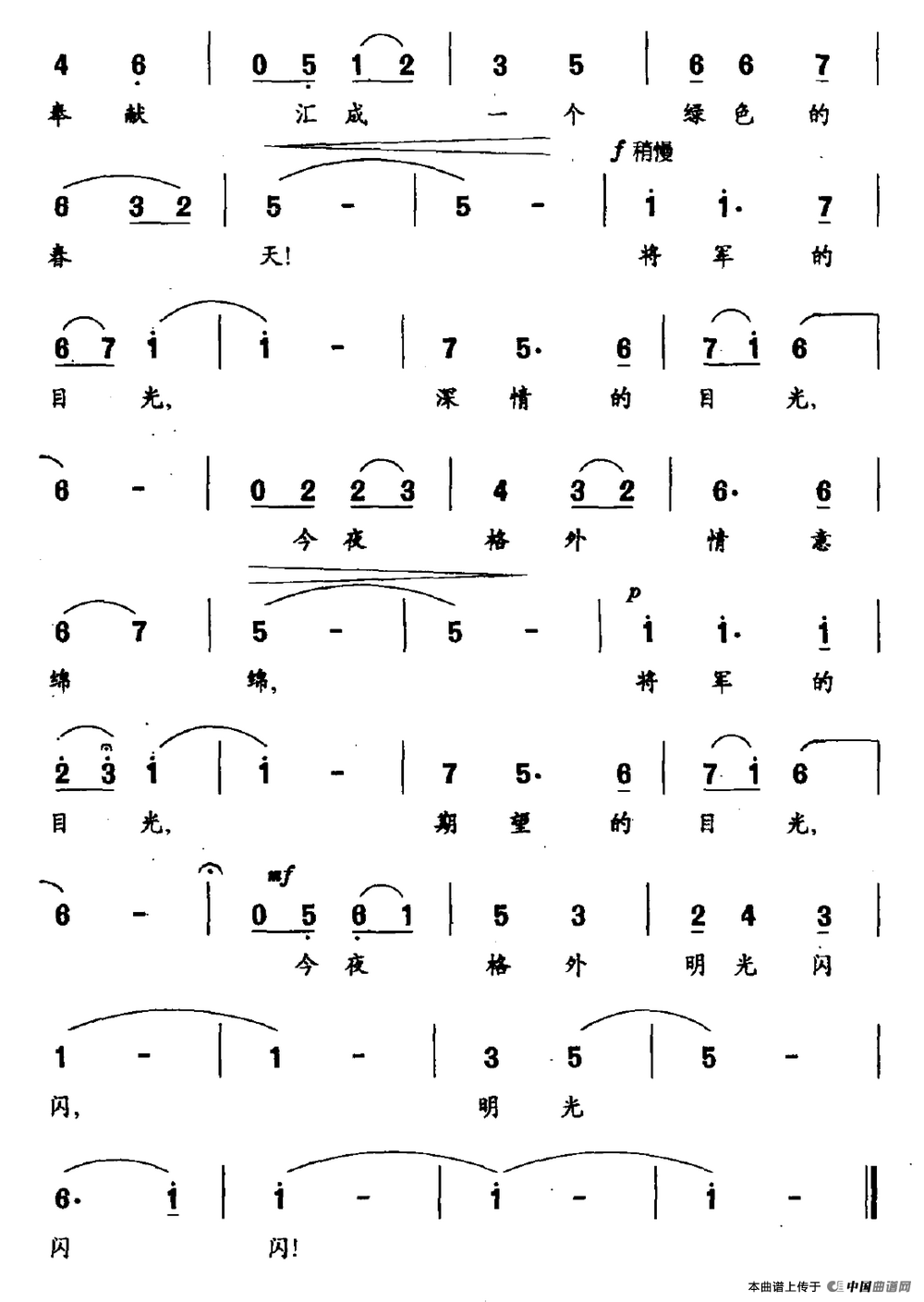 关于《将军的目光》曲谱的评论