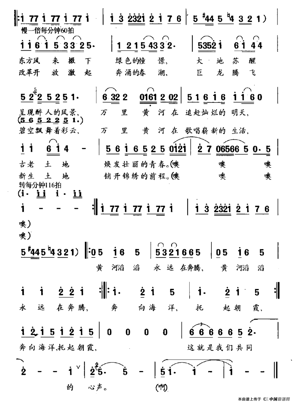 关于《黄河在奔腾》曲谱的评论