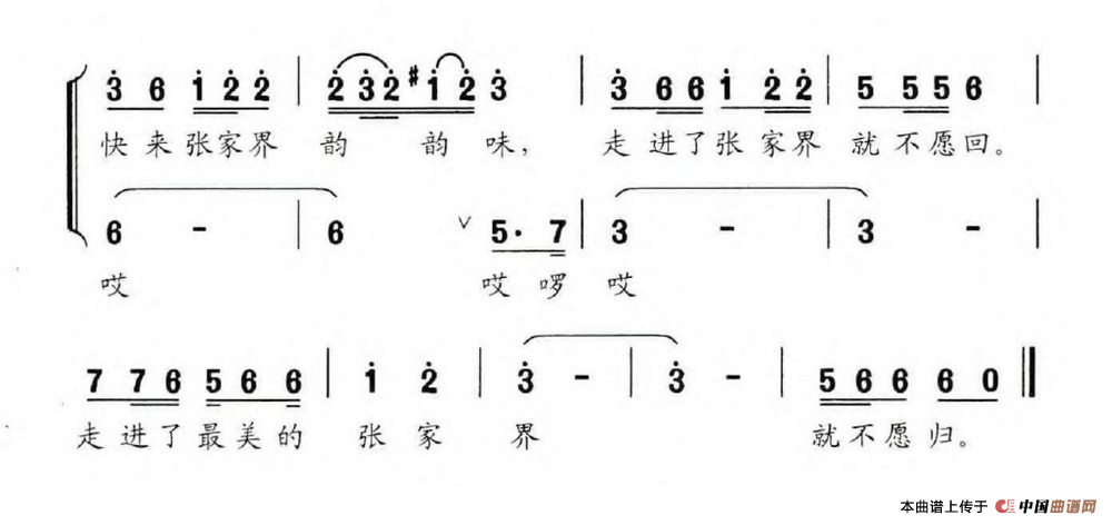关于《请来张家界》曲谱的评论