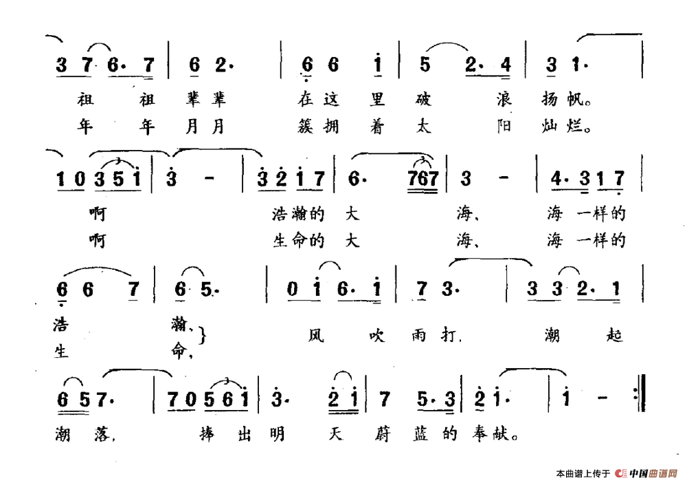 关于《蔚蓝的奉献》曲谱的评论
