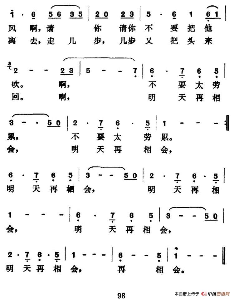 关于《明天再相会》曲谱的评论