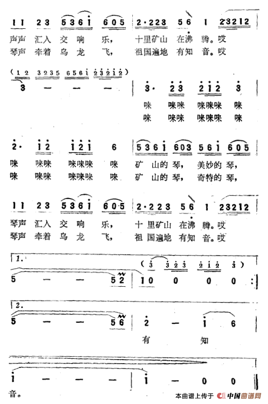 关于《矿山的琴声》曲谱的评论