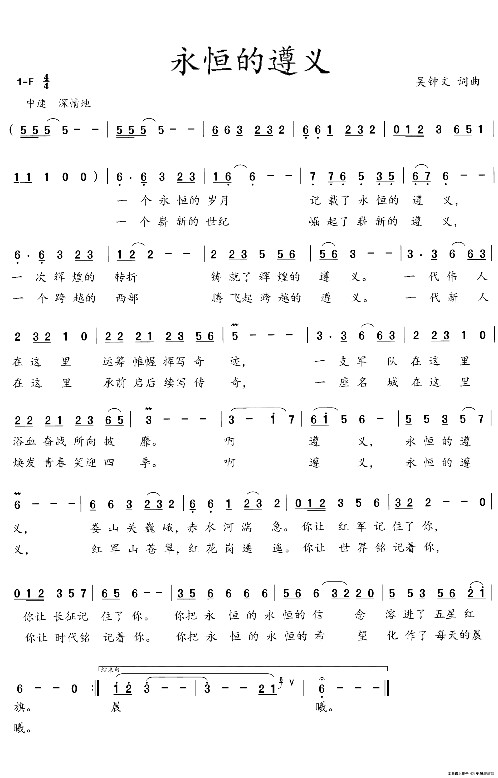 关于《永恒的遵义》曲谱的评论