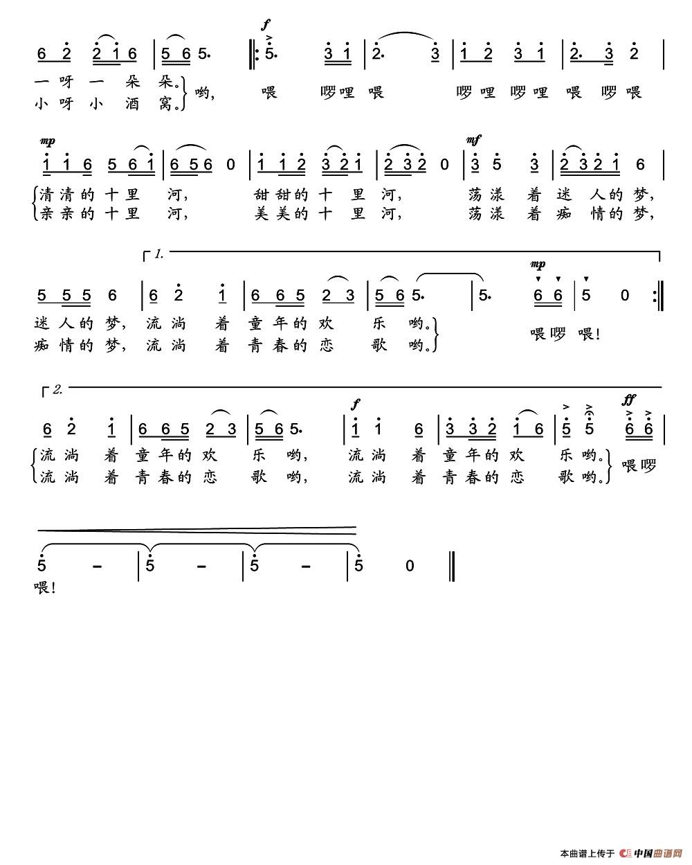 关于《十里河恋歌》曲谱的评论