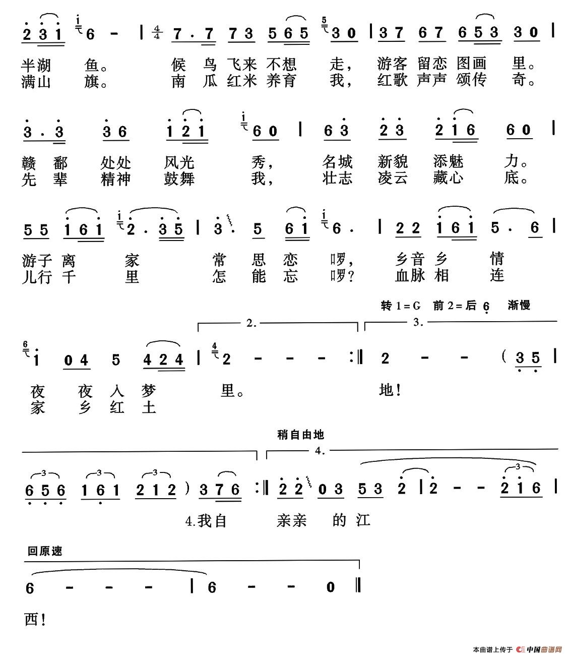 关于《老家在江西》曲谱的评论
