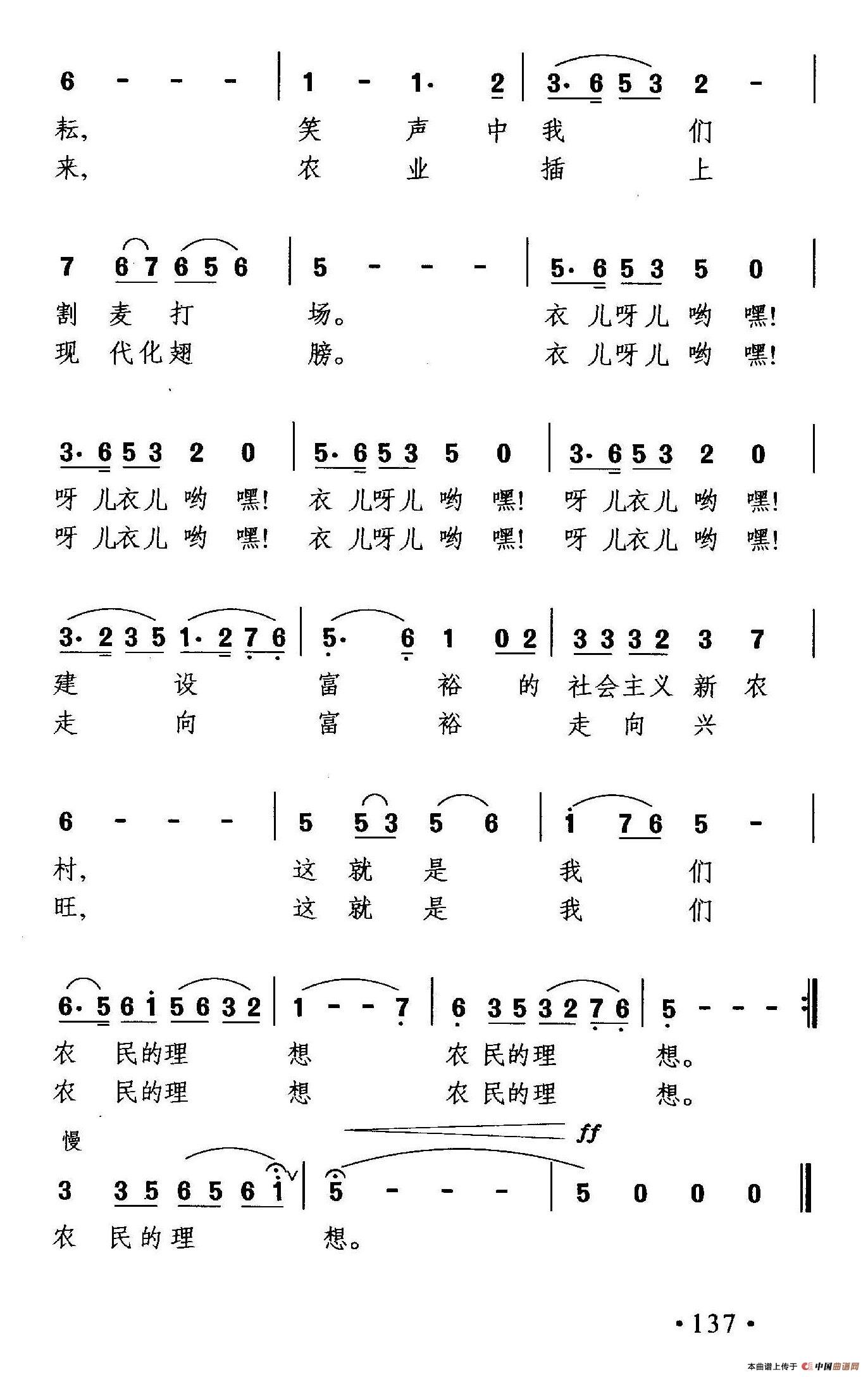 关于《农民的理想》曲谱的评论