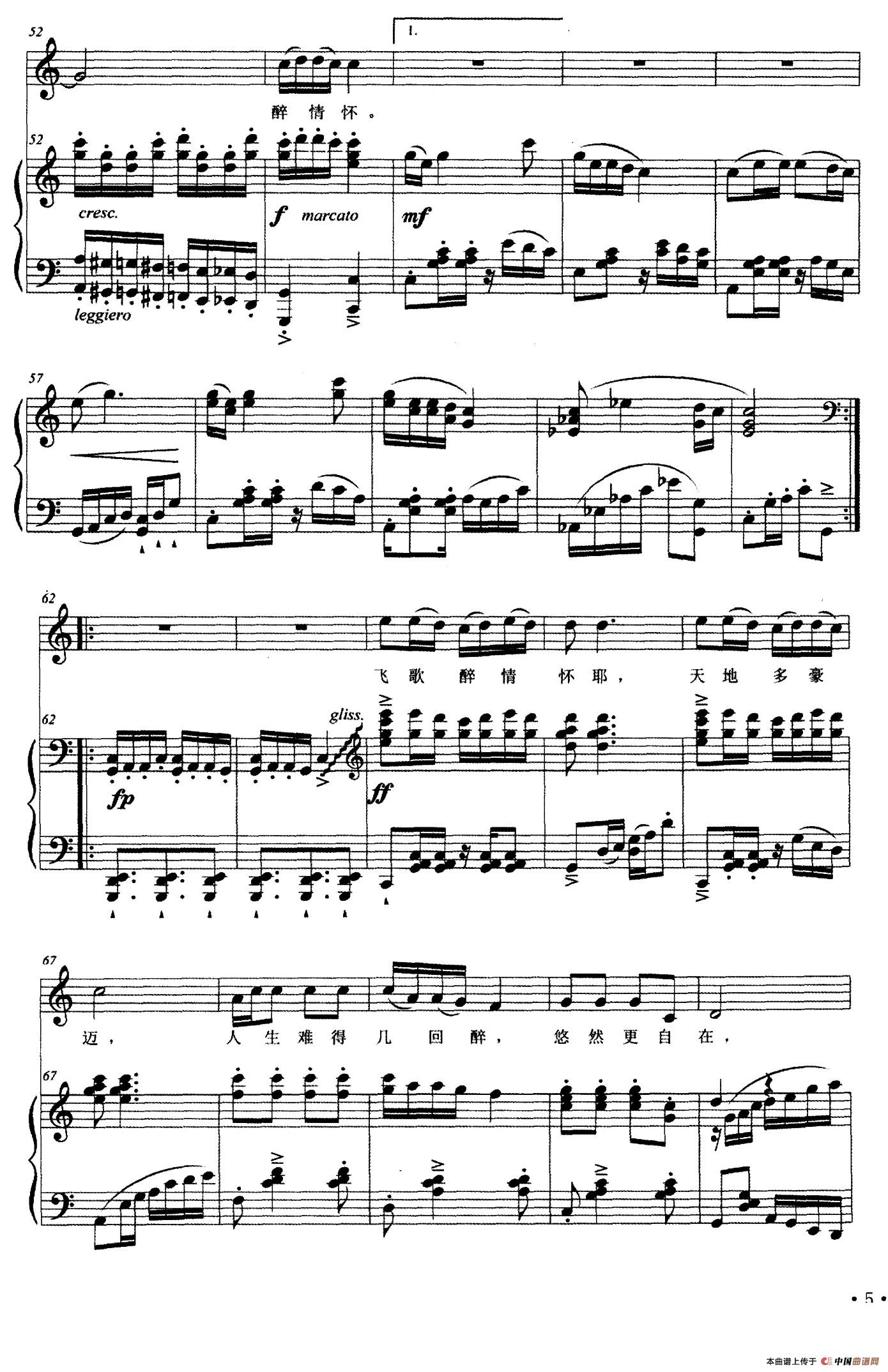 关于《飞歌醉情怀》曲谱的评论