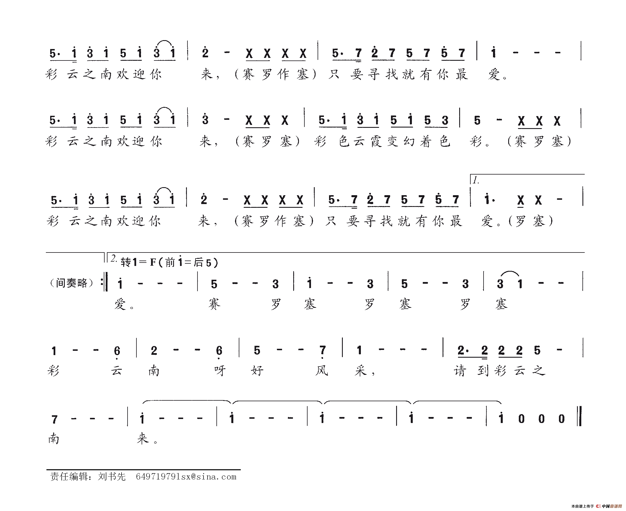关于《请到云南来》曲谱的评论