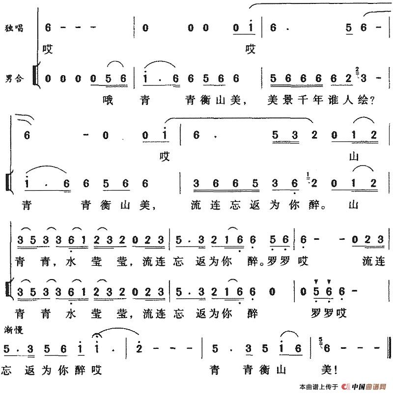 关于《青青衡山美》曲谱的评论