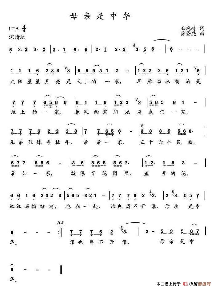 关于《母亲是中华》曲谱的评论