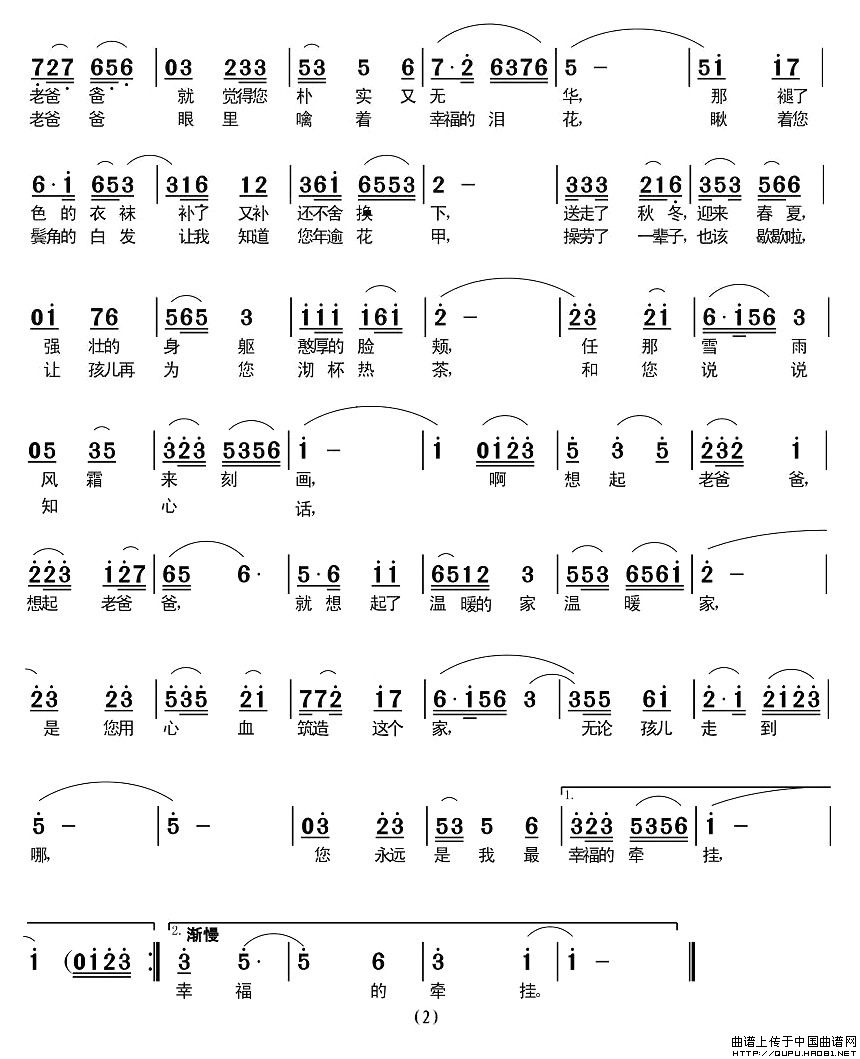 关于《想起老爸爸》曲谱的评论