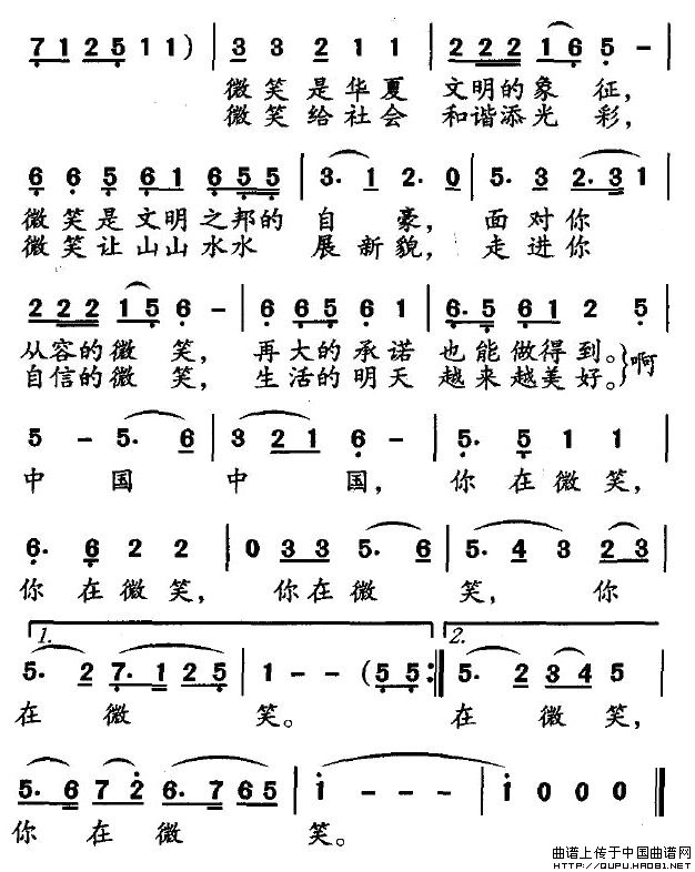 关于《中国在微笑》曲谱的评论