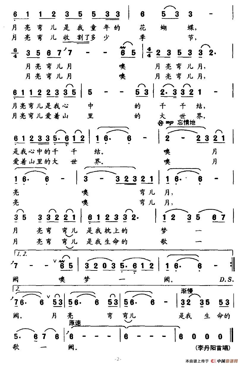 关于《月亮弯儿月》曲谱的评论