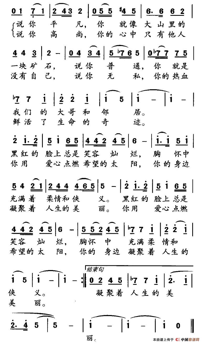 歌颂郭明义先进事迹的作品。这首歌产生在辽宁省音乐家协会组织“学习郭明义”的创作笔会上,郭明义是现代的活雷锋,他的事迹平凡又伟大,感动着每一个人,也深深地感动了我。演唱者宋艳红是沈阳前进歌舞团的著名女高音歌唱家,她的声音醇厚,委婉,她的歌声打动了每一个人。特别要提到的是词作家孙牧,已经在去年不幸病逝。孙牧同志才华横溢,为人勤恳,老实厚道。他的离去是我省词界的一大损失,我也失去了一位可敬的朋友和兄长。当这首歌在阜新的音乐会上首唱的时候,他已经悄然离去。让我们深切的缅怀他,愿他的作品永世长存!