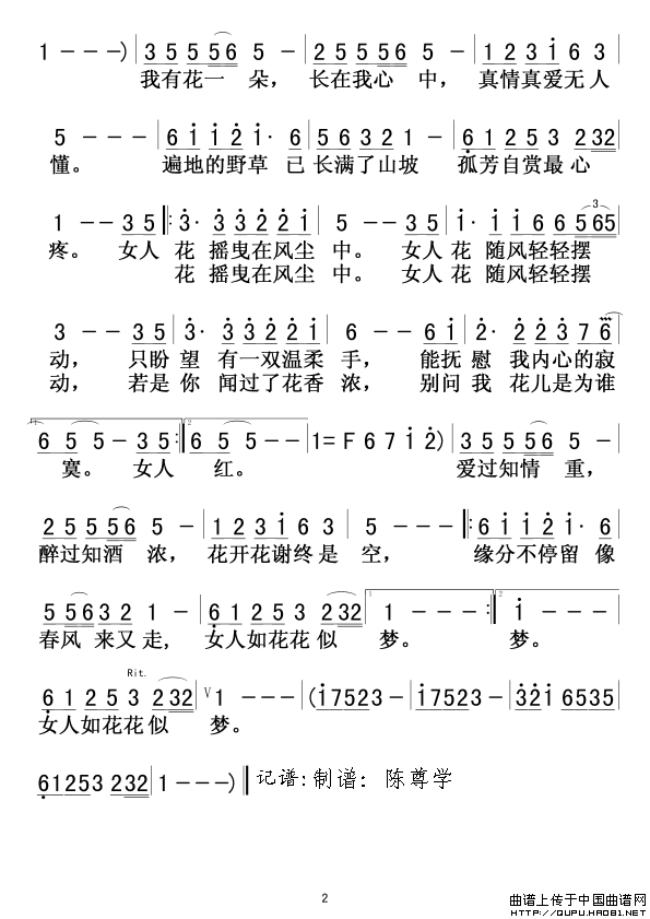 关于《女人花》曲谱的评论
