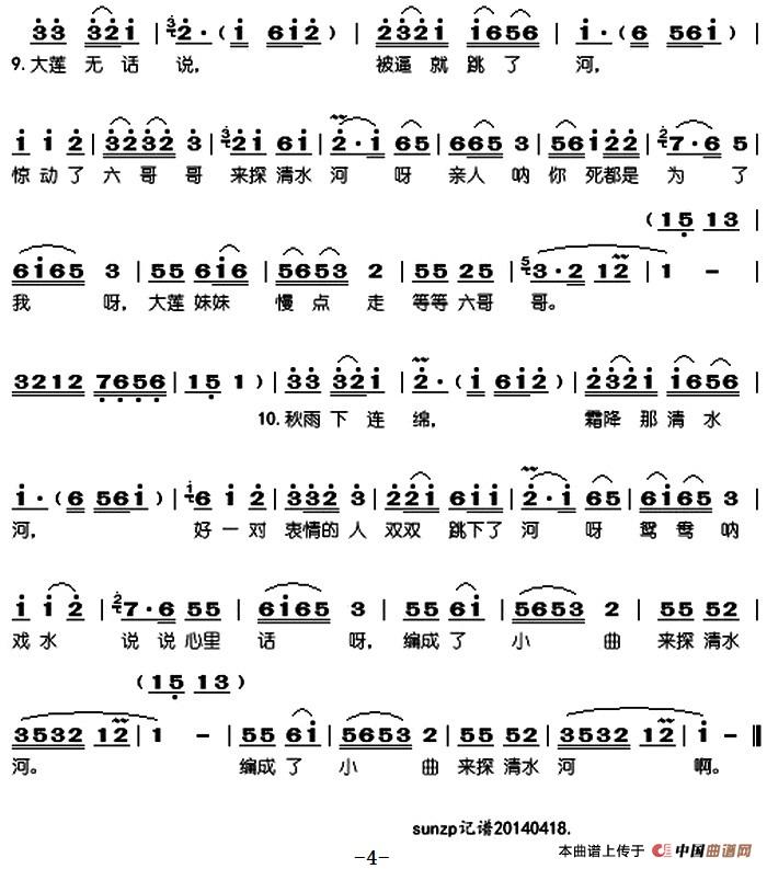 关于《探清水河》曲谱的评论