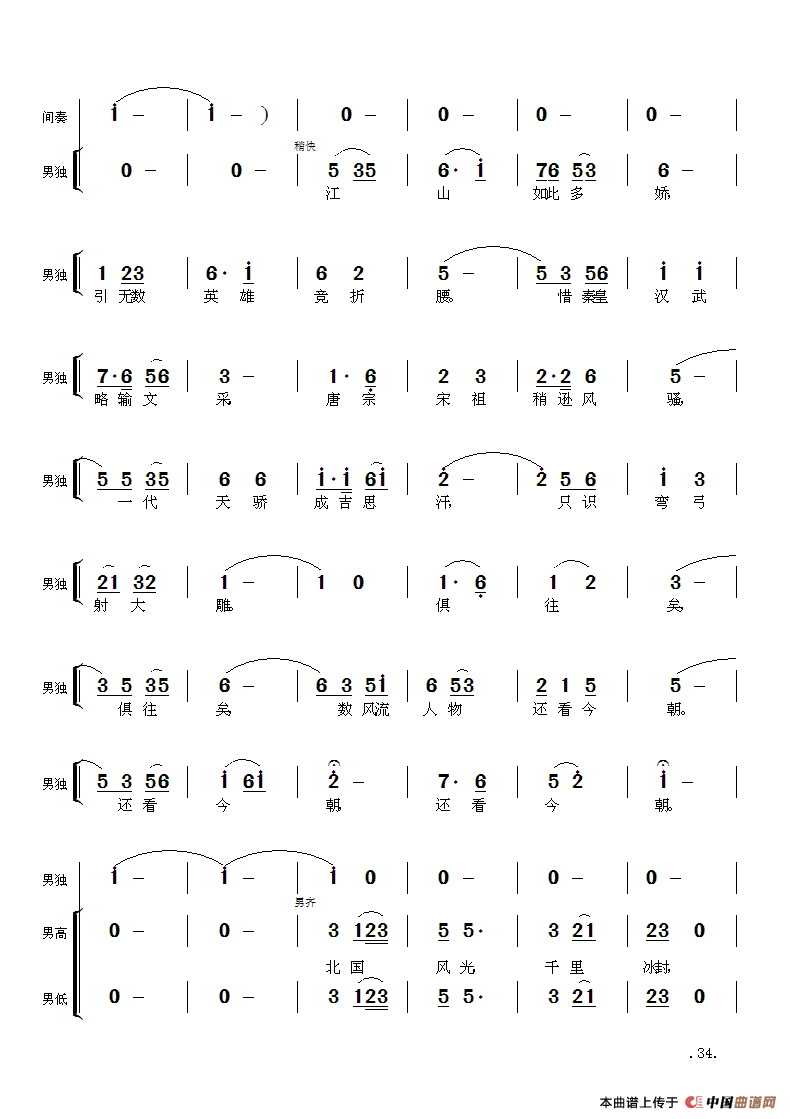 关于《毛主席诗词交响组歌:沁园春·雪》曲谱的评论