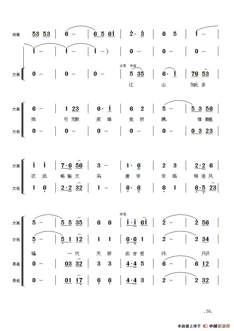 提示:在曲谱图片上单击右键,选择“图片另存为...”即可将曲谱保存到您的电脑中,打印时候可将图片插入到WORD中,调整合适大小打印即可。