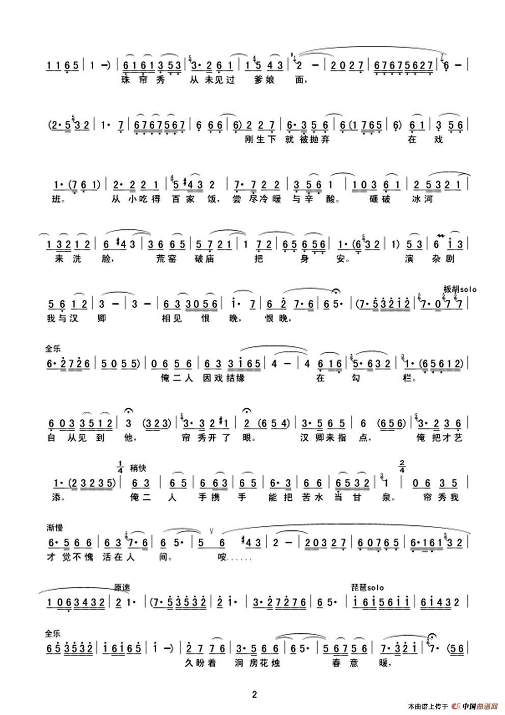 根据大型古装豫剧《珠帘秀》中精彩唱段,听记曲谱。