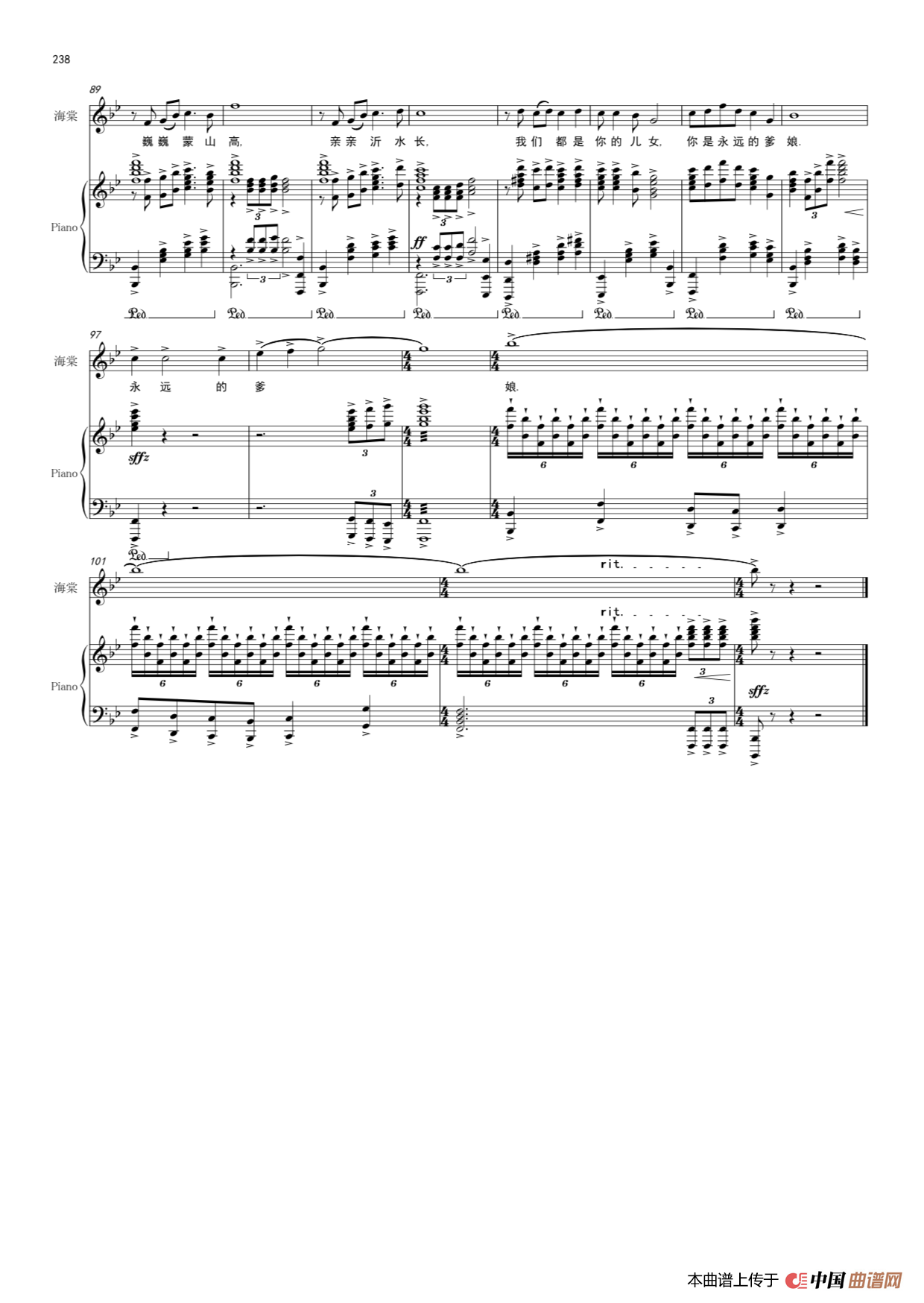 《《沂蒙山,永远的爹娘》女高音独唱修订版》文本歌词