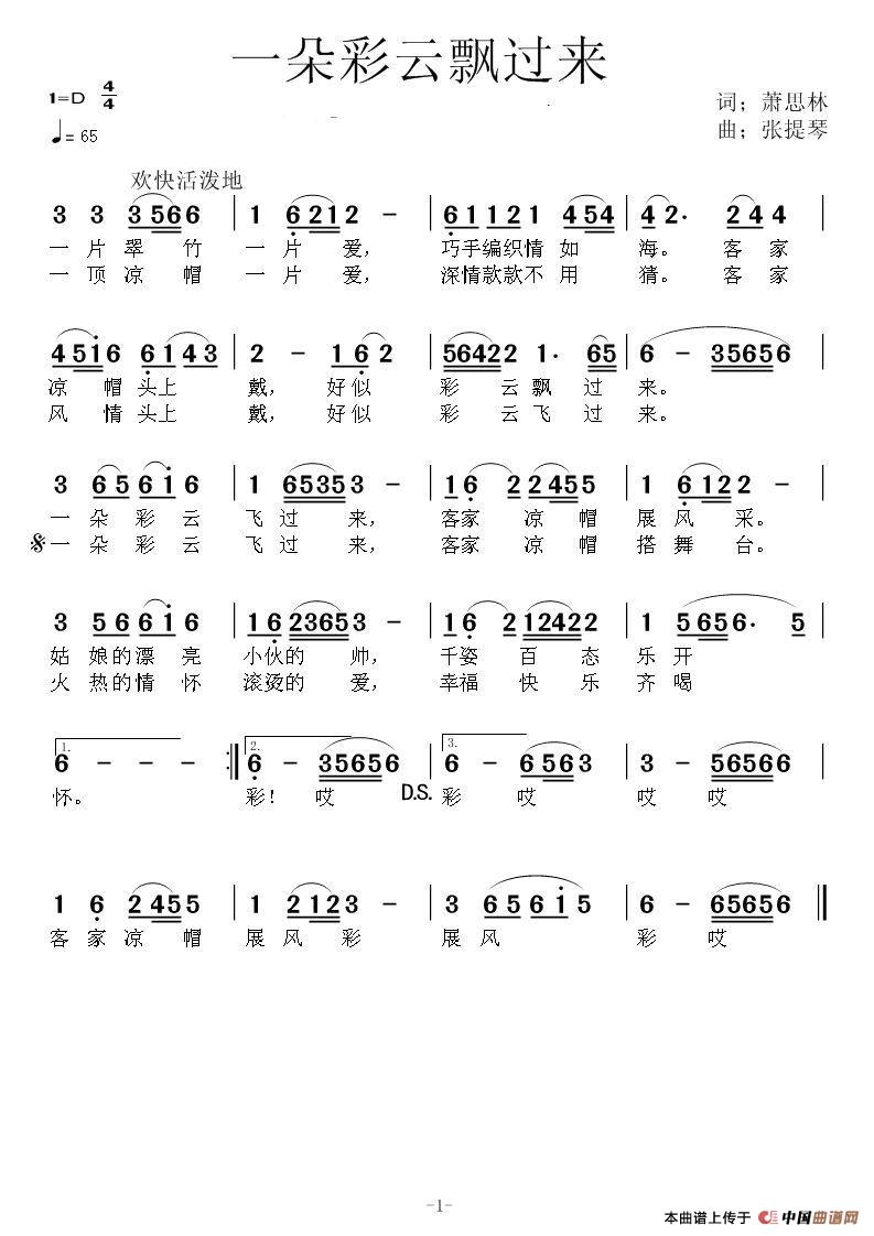 关于《一朵彩云飘过来》曲谱的评论