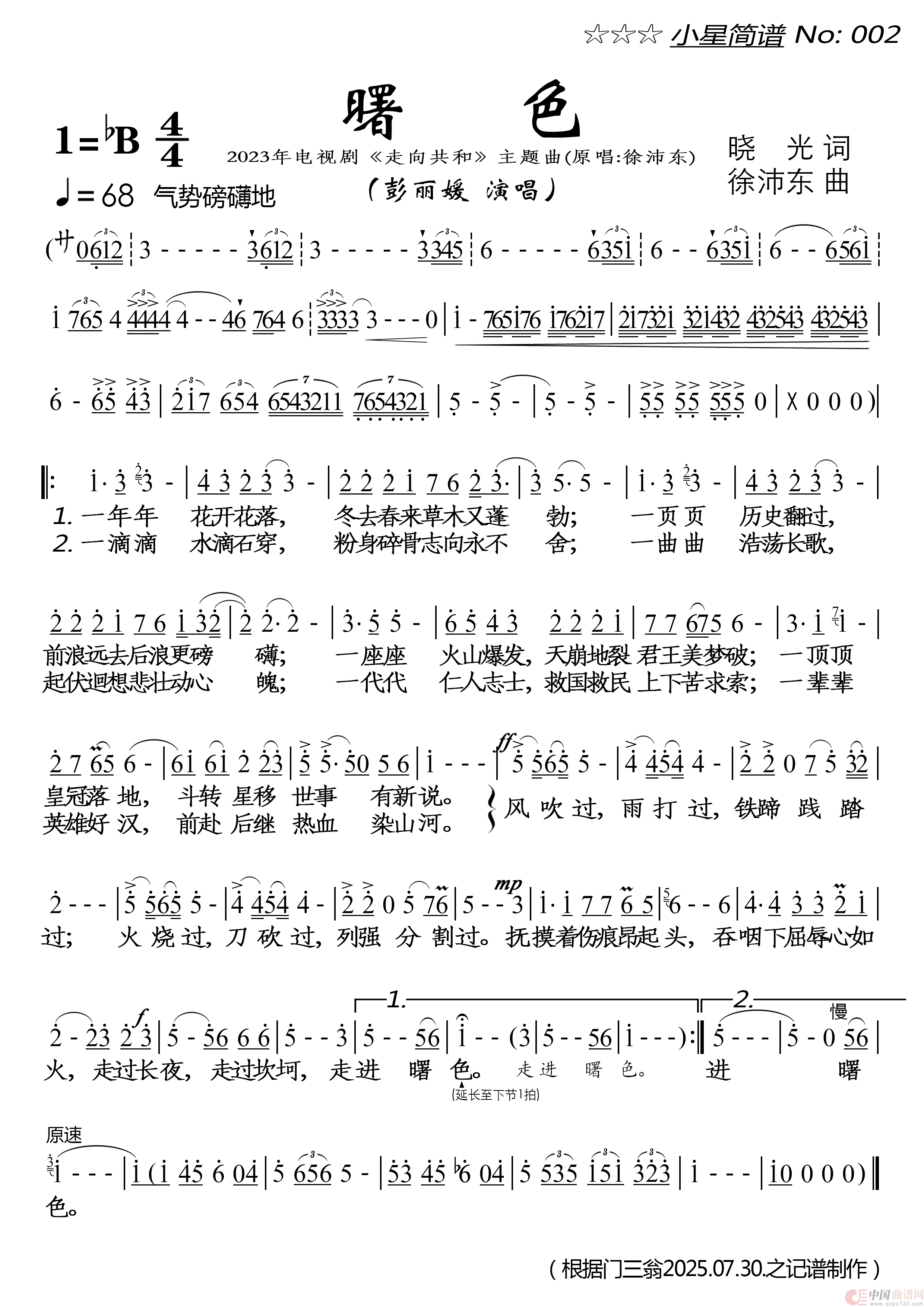关于《曙色》曲谱的评论