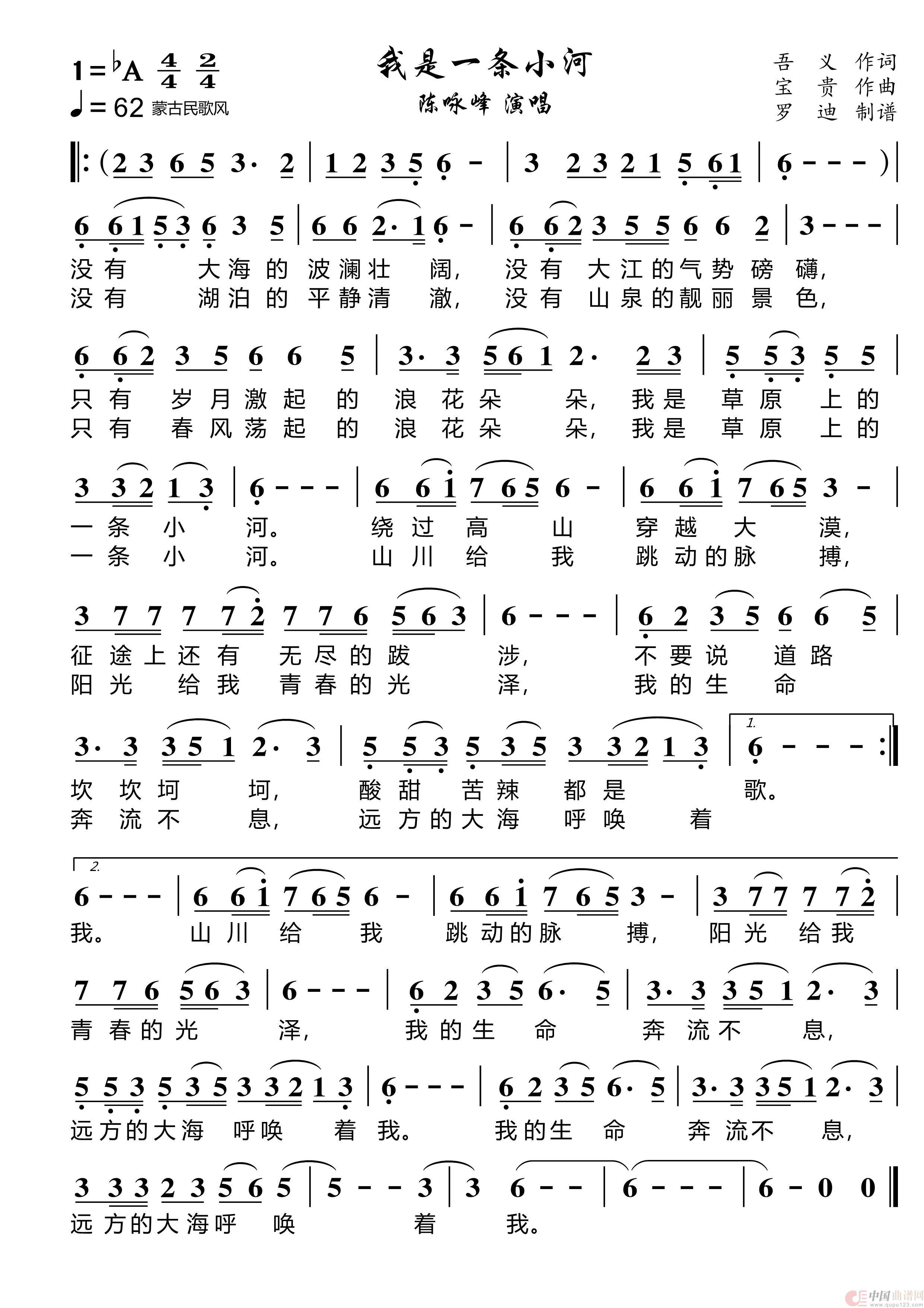 关于《我是一条小河》曲谱的评论