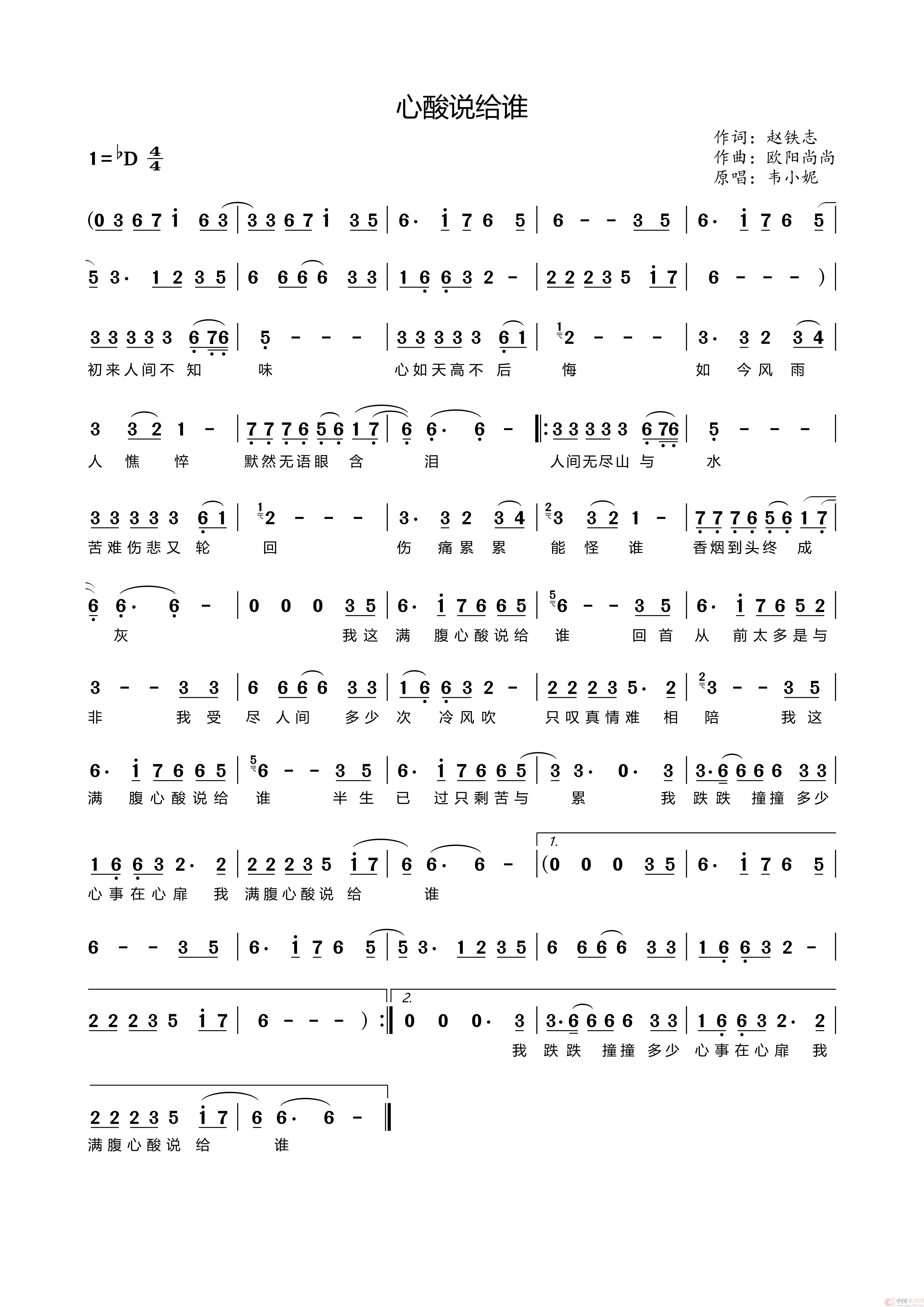 关于《韦小妮《心酸说给谁》》曲谱的评论